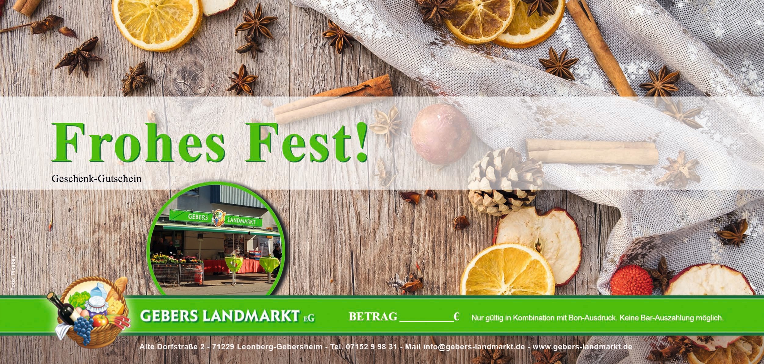 wir möchten das Jahr 2023 mit einer nochmaligen Spenden-Aktion für die Ukraine beenden. Sie können im Gebers Landmarkt bis zum 5. Januar 2024 Lebensmittelpakete im Wert von 20 Euro, 35 Euro oder 50 Euro in Form von Gutscheinen erwerben, die wir sammeln und für den Kauf der Waren einlösen. Diese gehen dann von Gebersheim direkt an „Menschen in Not“ in der Ukraine.